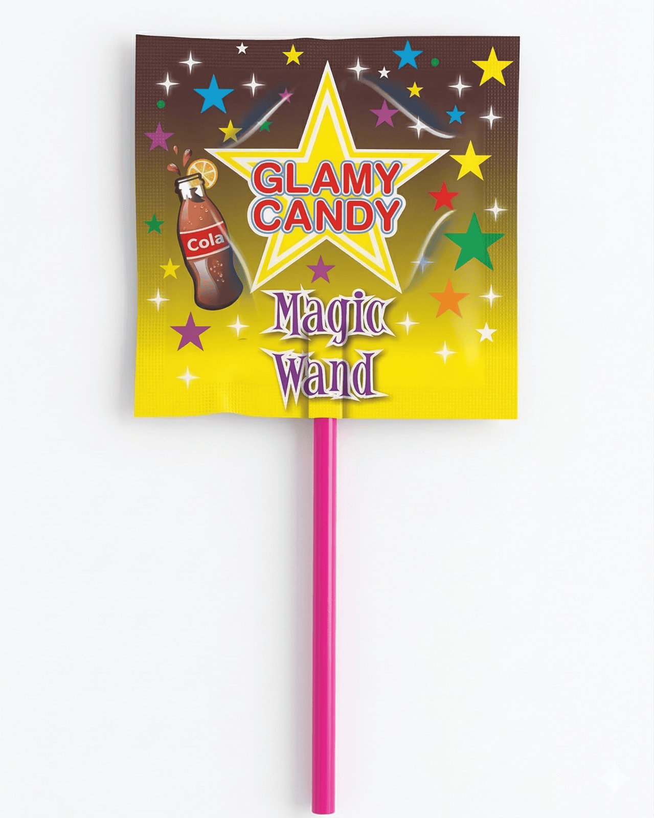 Magic Wand lollipops are a twist on the regular flat lollipop. We have given the lollipop a star shape and placed an extra big stick so the lollipop looks like an actual toy magic wand. Total unit weight is 12 grams.
